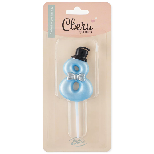 Свеча Цифра, 8 Джентльмен, 3,5*6 + 4,5 см, 1 шт. с держат., 803008