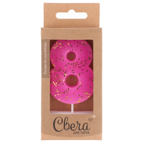 Свеча Цифра, 8 ЭКО, Неон, Сиреневый, с блестками, 4*6 + 3 см, 1 шт. с держат., 803218