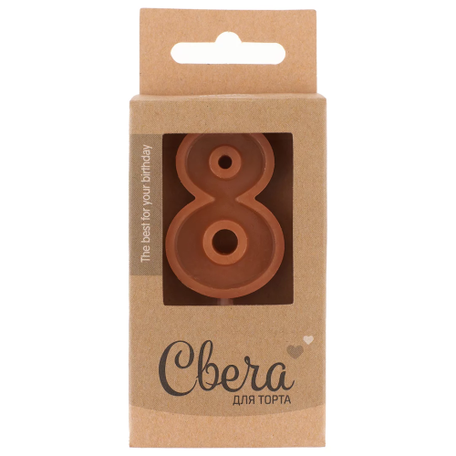 Свеча Цифра, 8 ЭКО, Шоколадное ассорти, Кофейный, 3*4,5 + 3,5 см, 1 шт. с держат., 803238