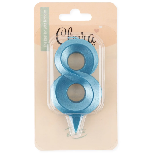 Свеча Цифра, 8 Грани, Синяя бирюза, 7 см, 1 шт., 1918