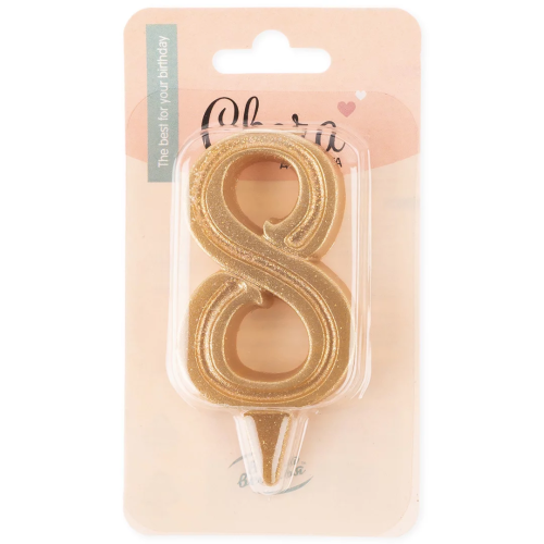 Свеча Цифра, 8 Грация, Золото, с блестками, 7 см, 1 шт., 2033