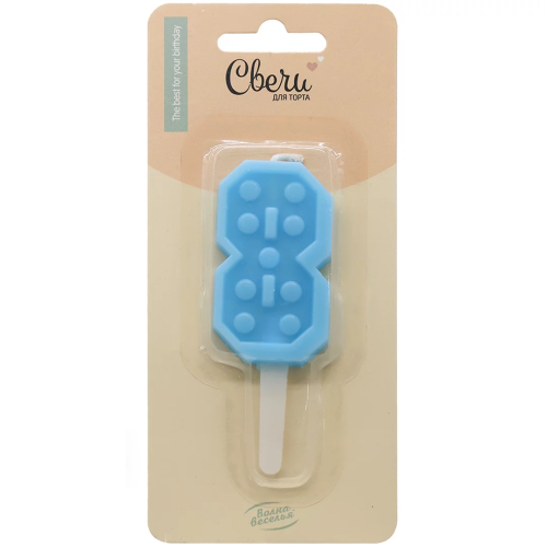 Свеча Цифра, 8 Конструктор, Голубой, 3,3*6,5 + 3 см, 1 шт. с держат., 802888