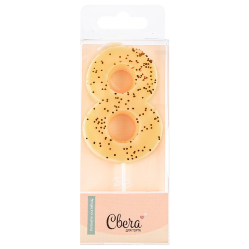 Свеча Цифра, 8, Кремовый, с блестками, 4,3*7,5 + 4,5 см, 1 шт. с держат., 803198