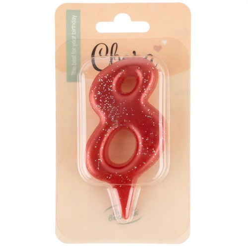Свеча Цифра, 8 Овал, Красный, с блестками, 4*8 см, 1 шт., 1494