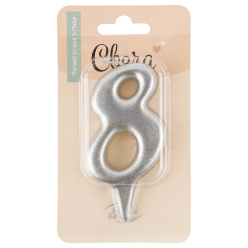 Свеча Цифра, 8 Овал, Серебро, Металлик, 7 см, 1 шт., 1564
