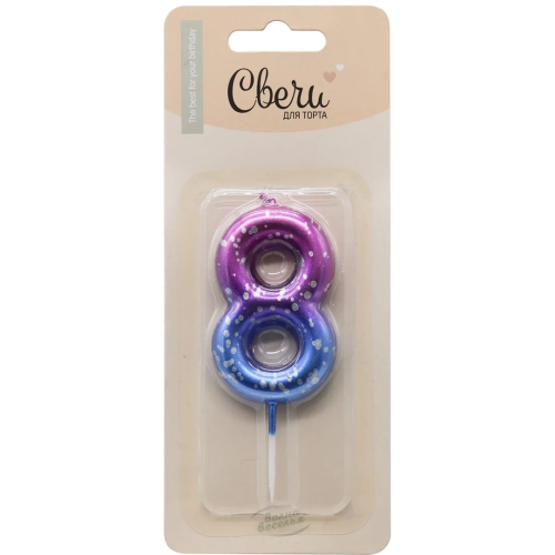 Свеча Цифра, 8 Сияющий космос, на шпажке, Градиент, 6 + 3 см, 1 шт. с держат., 802908