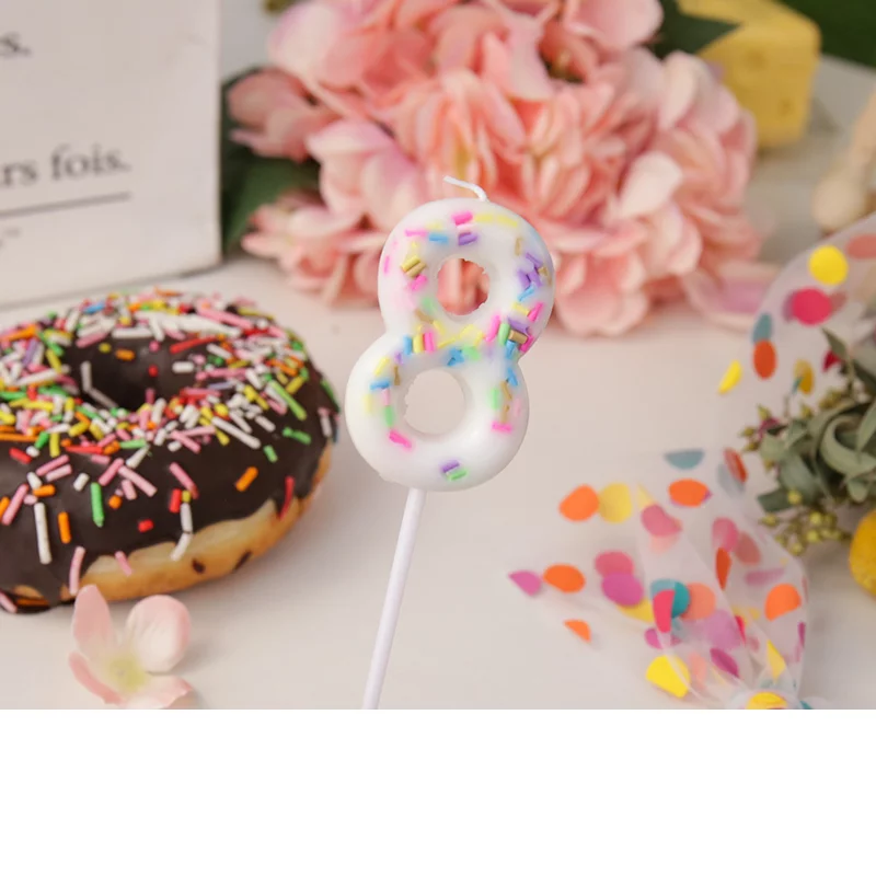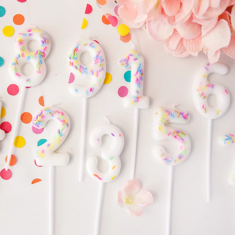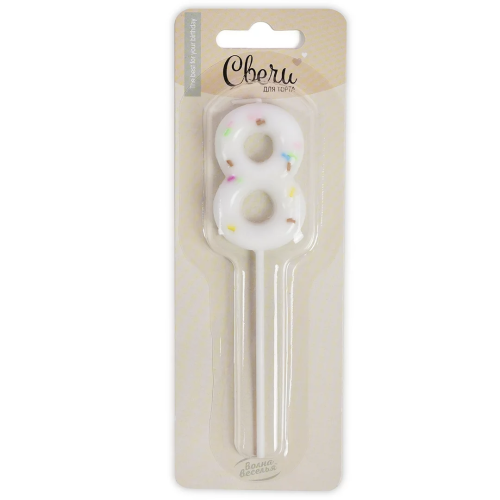 Свеча Цифра, 8 Сладкое конфетти, на шпажке, Белый, 5 + 7 см, 1 шт. с держат., 802848