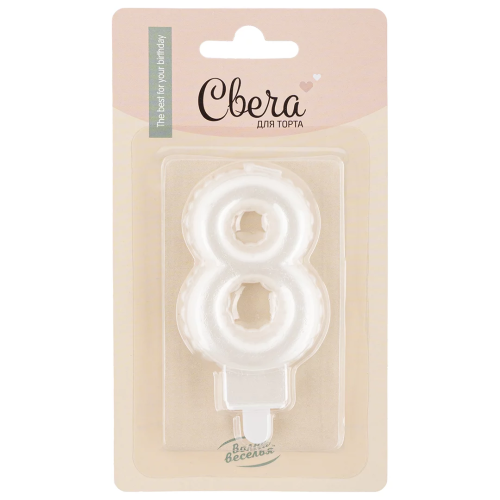 Свеча Цифра, 8 Воздушный шарик, Жемчужный, Перламутр, 5*7 + 1 см, 1 шт., 639268
