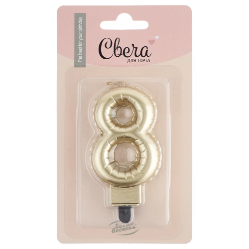Свеча Цифра, 8 Воздушный шарик, Золото, Металлик, 5*7 + 1 см, 1 шт. с держат., 622958