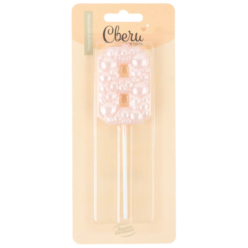 Свеча Цифра, 8 Воздушный жемчуг, на шпажке, Нежно-розовый, Перламутр, 6 см, 1 шт. с держат., 803248