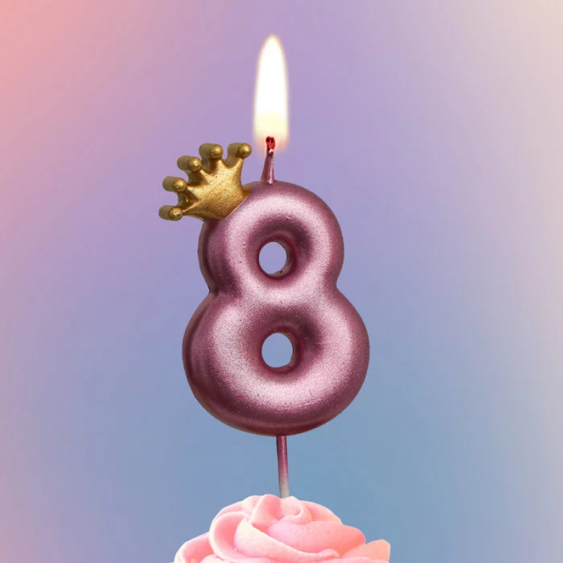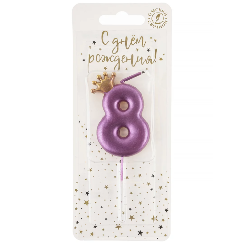 Свеча Цифра, 8 Золотая корона, на шпажке, Ярко-розовый, Металлик, 4*5,5 + 4 см, 1 шт. с держат., 4778