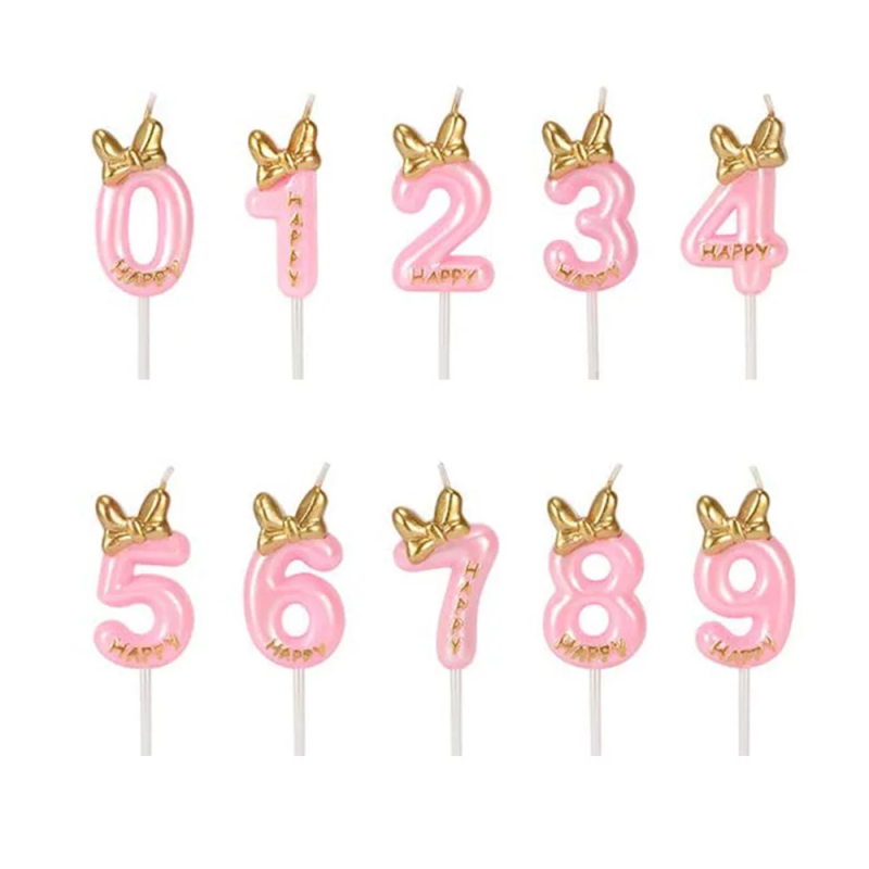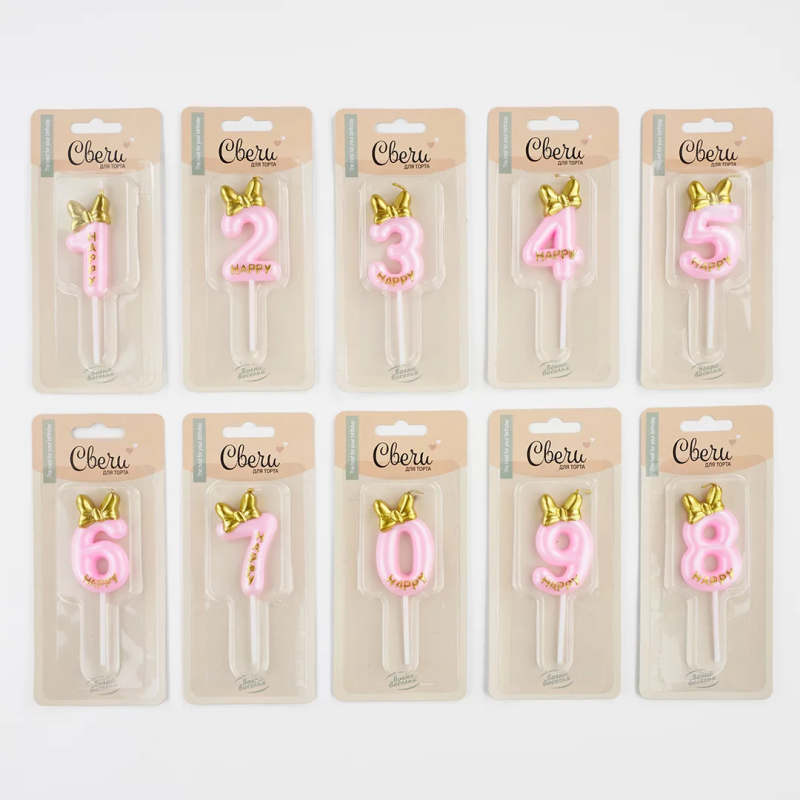 | Линейка | Свеча Цифра, Золотой бант, Розовый |