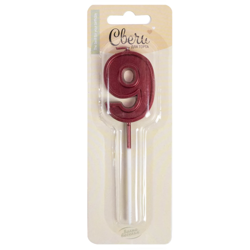 Свеча Цифра, 9 Чистая линия, на шпажке, Красный, 4,7*6,7 + 7 см, 1 шт. с держат., 802809
