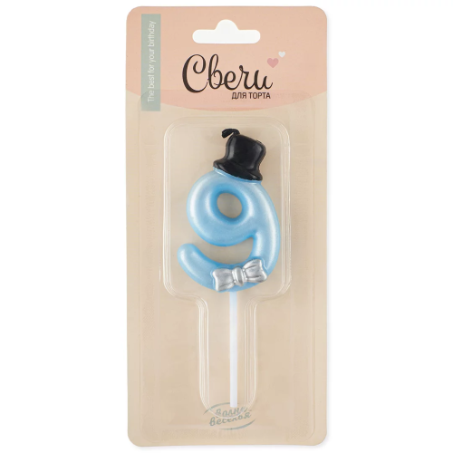 Свеча Цифра, 9 Джентльмен, 3,5*6 + 4,5 см, 1 шт. с держат., 803009