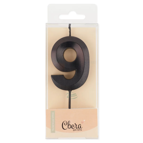 Свеча Цифра, 9 Грани, Черный, Металлик, 4,2*6 + 4,5 см, 1 шт. с держат., 803179