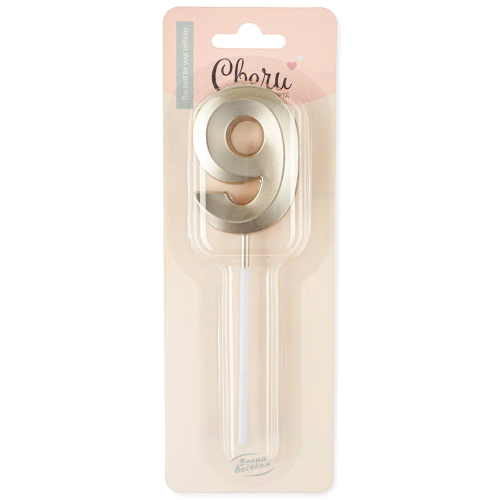 Свеча Цифра, 9 Грани, на шпажке, Белое золото, Металлик, 3,5*5 + 7 см, 1 шт. с держат., 802989