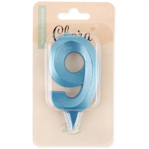 Свеча Цифра, 9 Грани, Синяя бирюза, 7 см, 1 шт., 1919