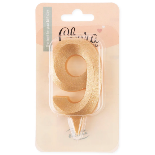 Свеча Цифра, 9 Грани, Золото, 7 см, 1 шт., 1707