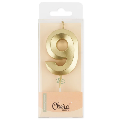 Свеча Цифра, 9 Грани, Золото, Металлик, 4,2*6 + 4,5 см, 1 шт. с держат., 803169