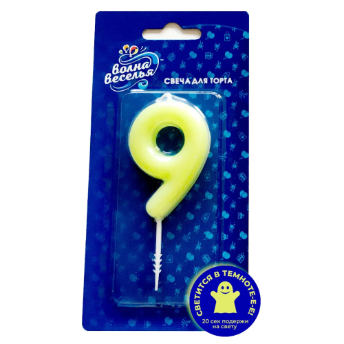Свеча Цифра, 9 Люминесцентная, Флуор, 3,5*8,5 см, 1 шт. с держат., 802689