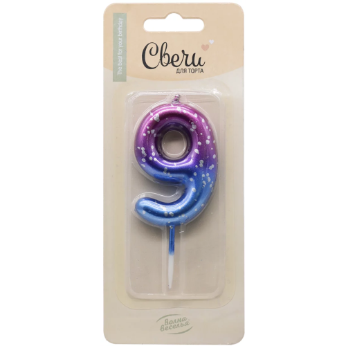 Свеча Цифра, 9 Сияющий космос, на шпажке, Градиент, 6 + 3 см, 1 шт. с держат., 802909