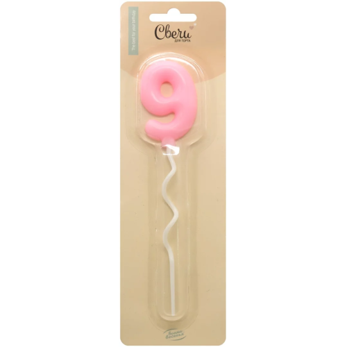 Свеча Цифра, 9 Воздушная серия, Розовый, 6 + 11 см, 1 шт. с держат., 802899