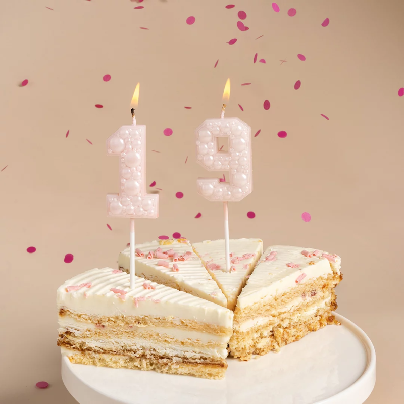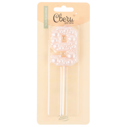 Свеча Цифра, 9 Воздушный жемчуг, на шпажке, Нежно-розовый, Перламутр, 6 см, 1 шт. с держат., 803249
