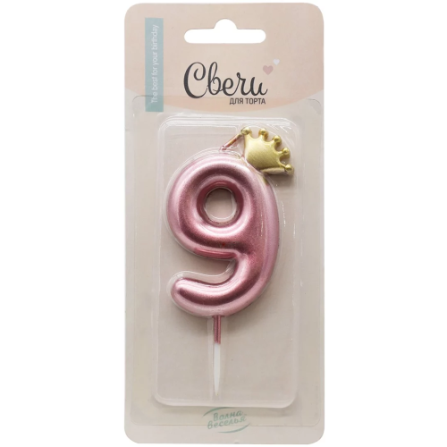 Свеча Цифра, 9 Золотая корона, на шпажке, Розовый, Металлик, 4,5*7 + 3,5 см, 1 шт. с держат., 802819