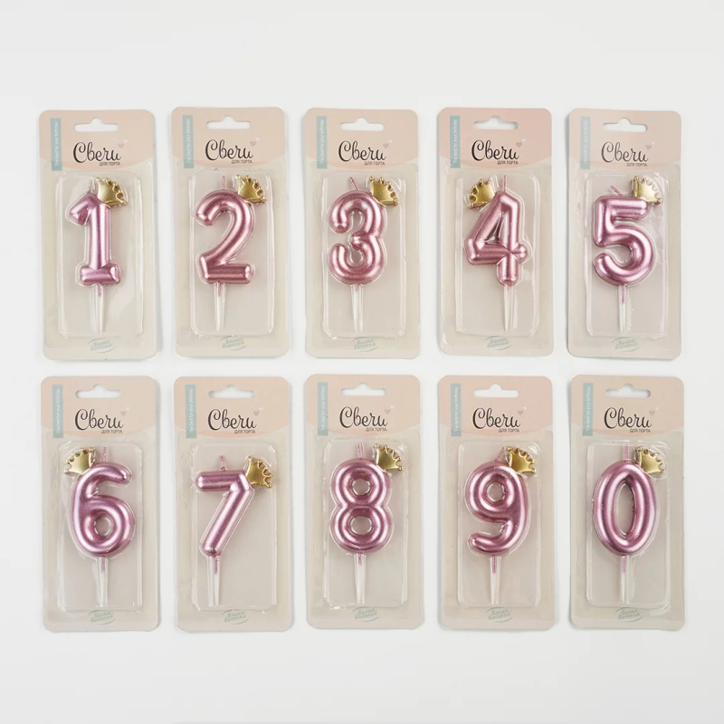 | Линейка | Свеча Цифра, Золотая корона, Розовый |