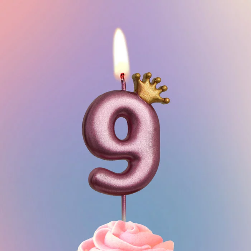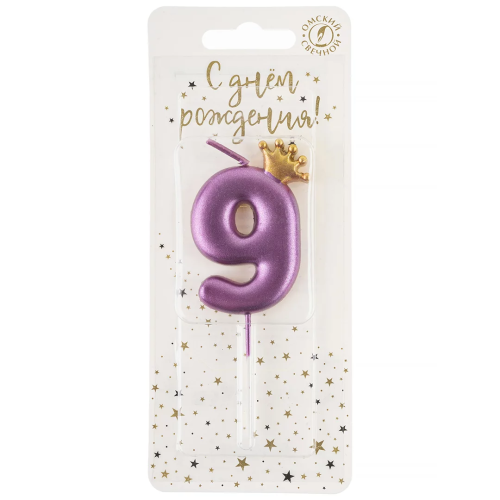Свеча Цифра, 9 Золотая корона, на шпажке, Ярко-розовый, Металлик, 4*5,5 + 4 см, 1 шт. с держат., 4779