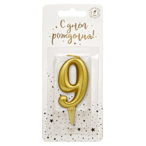 Свеча Цифра, 9, Золото, 6 см, 1 шт., 3089