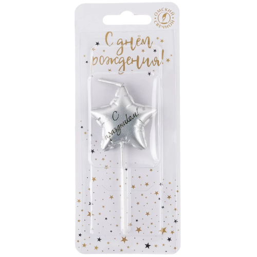 Свеча Звезда, Воздушный шар, на шпажке, Серебро, Металлик, 4,2 + 4,8 см, 1 шт. с держат., 4810