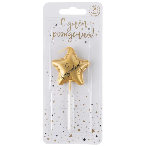 Свеча Звезда, Воздушный шар, на шпажке, Золото, Металлик, 4,2 + 4,8 см, 1 шт. с держат., 4809