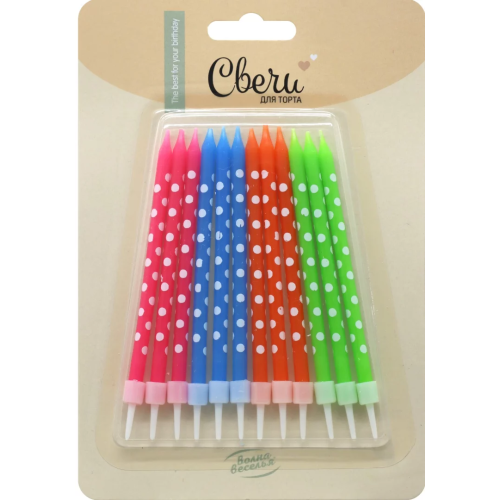 Свечи Белый горошек, Ассорти, 0,5*9,5 см, 12 шт. с держат., 802920