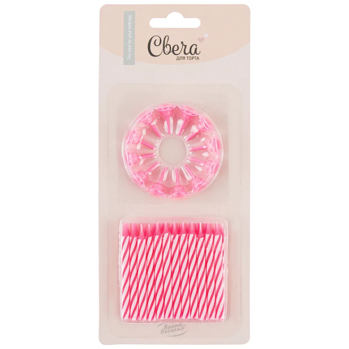 Свечи Белые полоски, Розовый, 6 см, 24 шт. с держат., 132512