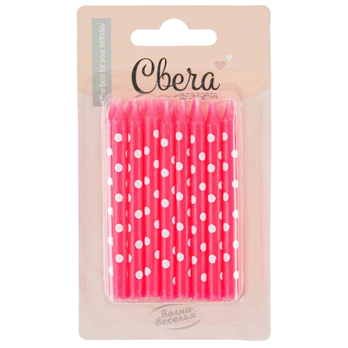 Свечи Белые точки, Розовый, 0,6*7 см, 16 шт., 132424