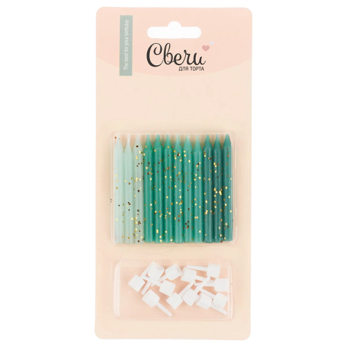 Свечи Бирюзовый микс, с блестками, 0,5*6 + 1 см, 12 шт. с держат., 803200