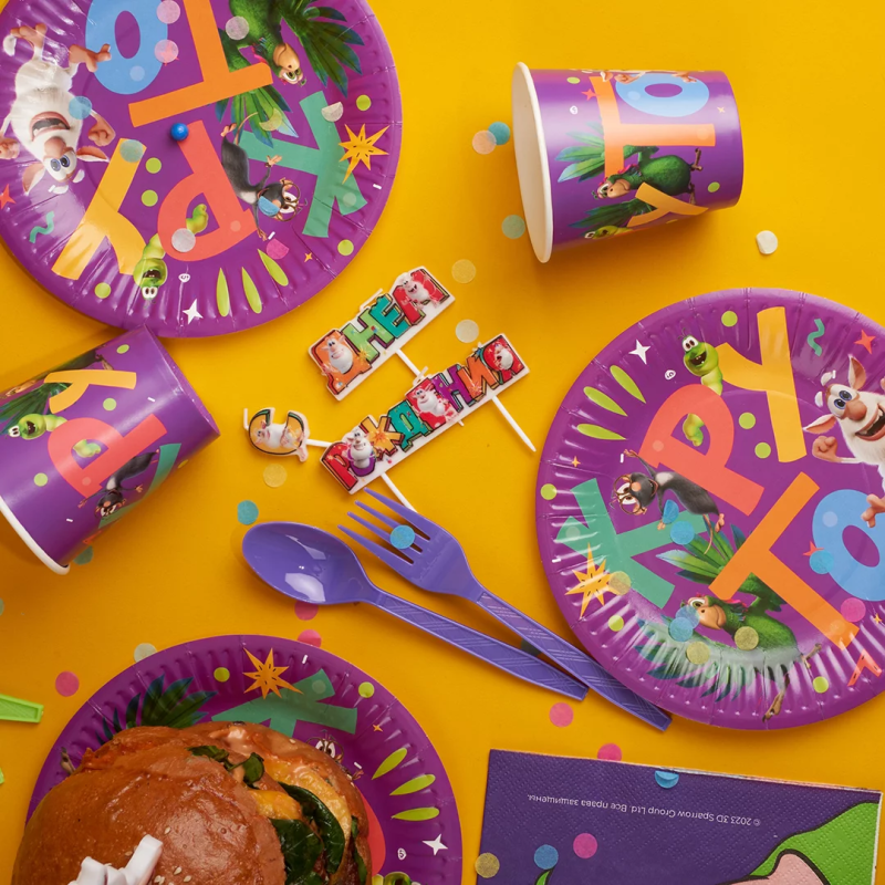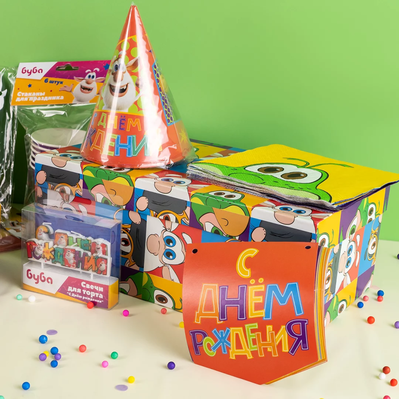 Используя в оформлении товары лицензионной коллекции «Буба», Вы сможете оформить знаменательное событие в тематическом стиле любимого мультфильма и его героями.