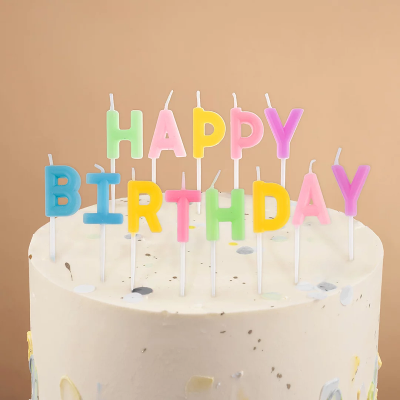 Свечи Буквы Happy Birthday, Нежное ассорти, Макарунс, 2*3 + 2 см, 1 шт. с держат., 803024
