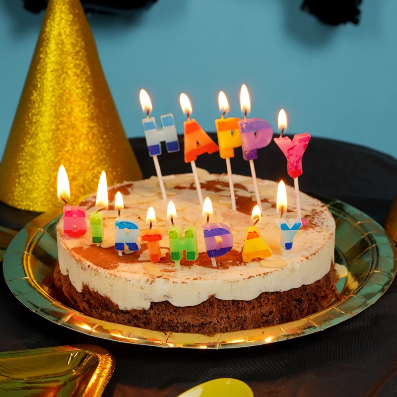 Свечи Буквы Happy Birthday, Яркий микс, 2,5 см, 1 шт. с держат., 132519