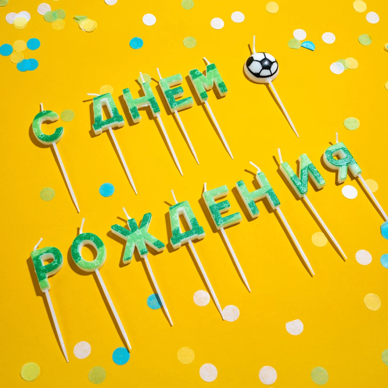 Свечи Буквы С Днем Рождения (футбол), 7 см, 1 шт. с держат., 629167