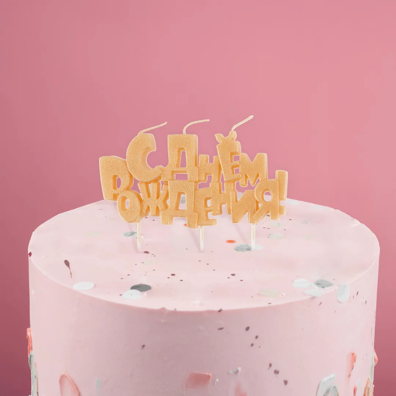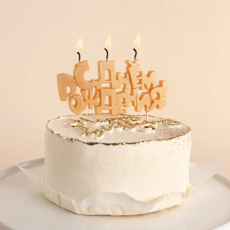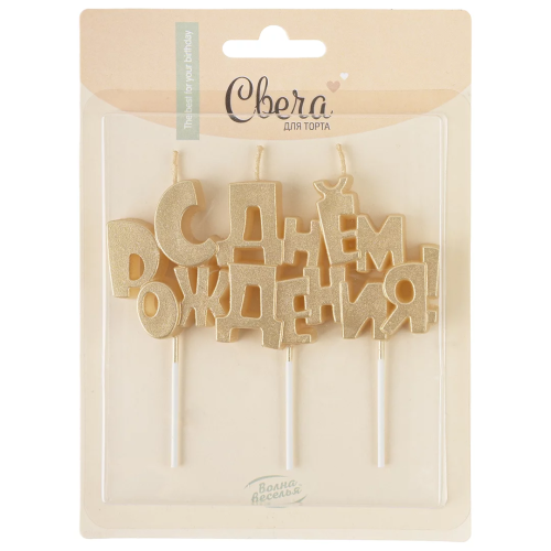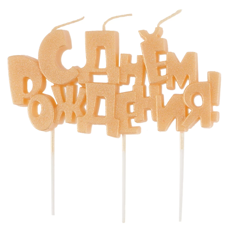 Свечи Буквы С Днем Рождения, Золото, 9,5*4,5 + 4 см, 1 шт. с держат., 5197