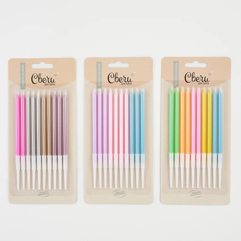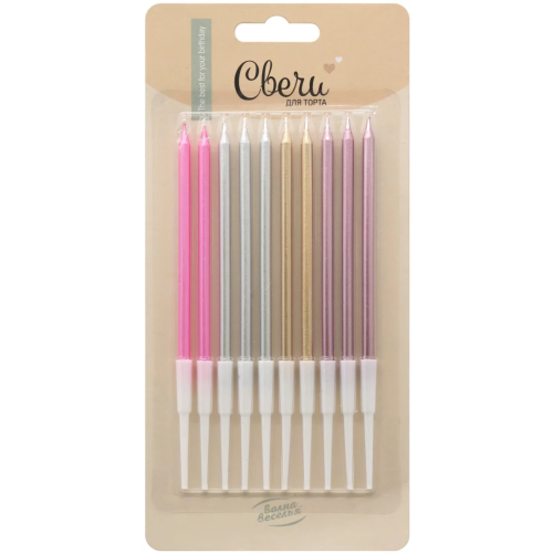 Свечи Элегантная серия, Ассорти, Металлик, 0,5*10,5 + 5 см, 10 шт. с держат., 802930