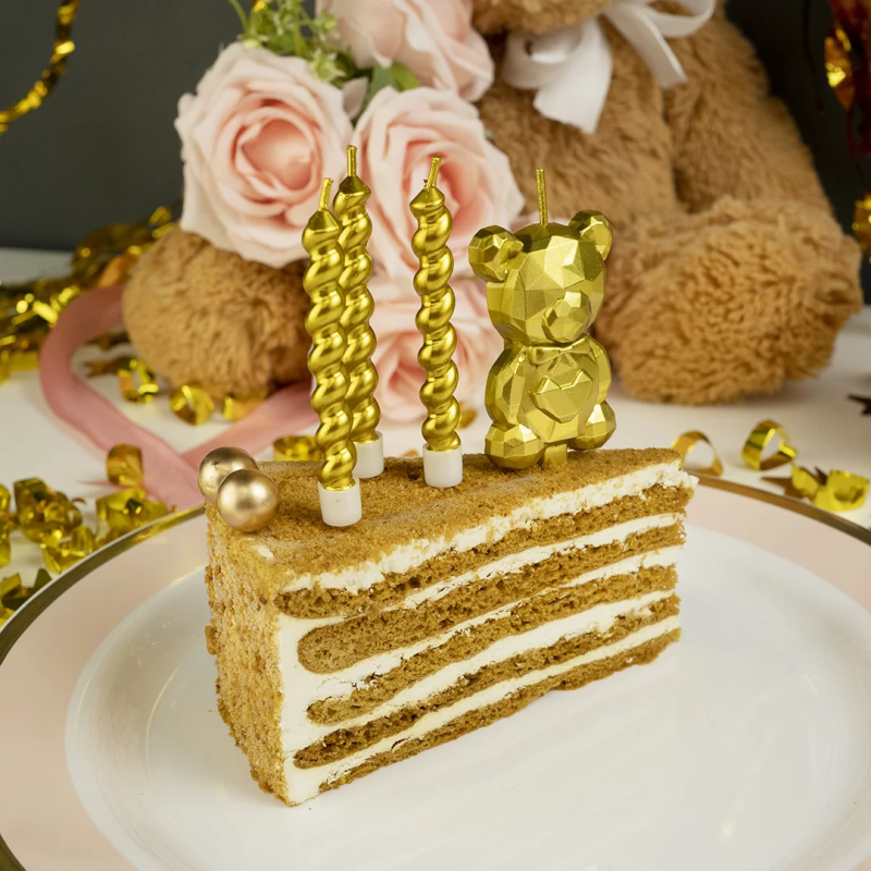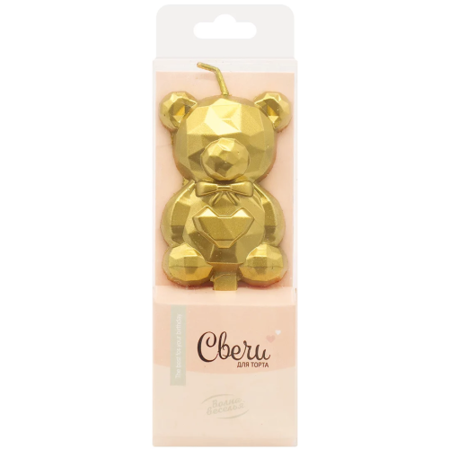 Свечи Фигура 3D, Мишка, Золото, Металлик, 2,5*4 + 3 см, 1 шт. с держат., 802969