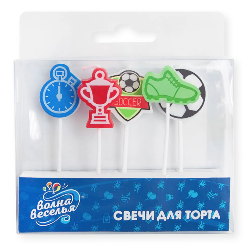 Свечи Фигура, Футбол, Ассорти, 2,5 см, 5 шт. с держат., 127092