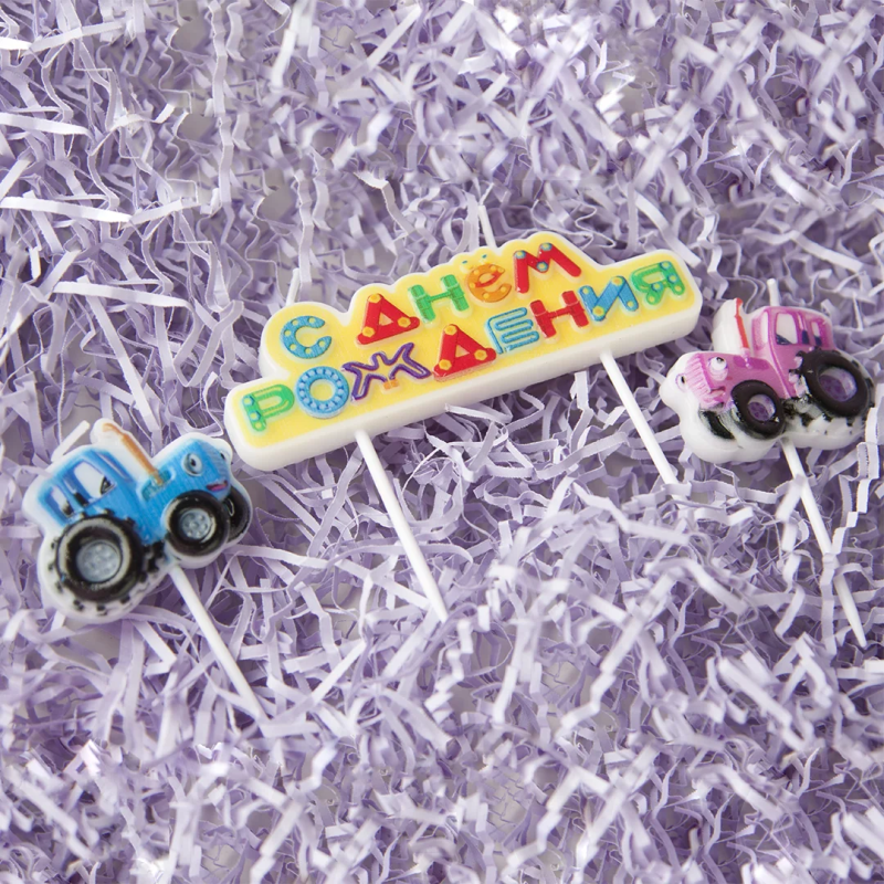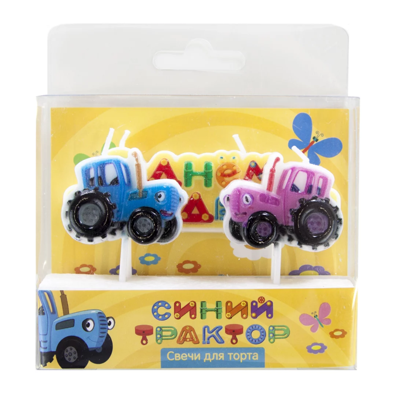 Свечи Фигура, Синий трактор, С Днем Рождения!, 7 см, 3 шт. с держат., 501629