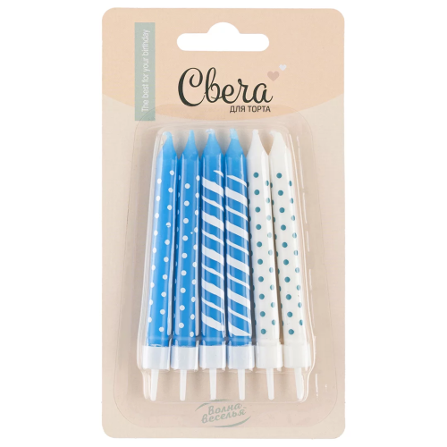 Свечи Голубой микс, 0,8*8 см, 6 шт. с держат., 126762