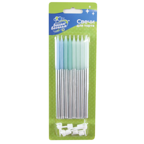 Свечи Голубой микс, Металлик, 0,6*12 см, 8 шт. с держат., 802723