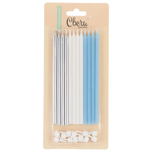 Свечи Голубой микс, Металлик, 0,6*14,5 см, 12 шт. с держат., 708019