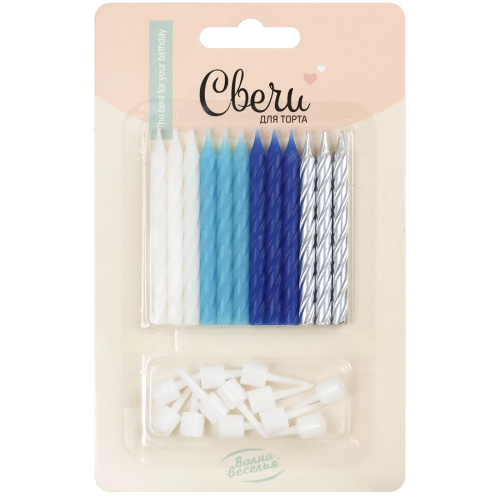 Свечи Голубой микс, Металлик, 6 см, 12 шт. с держат., 132531